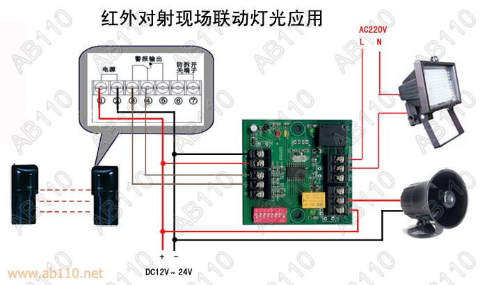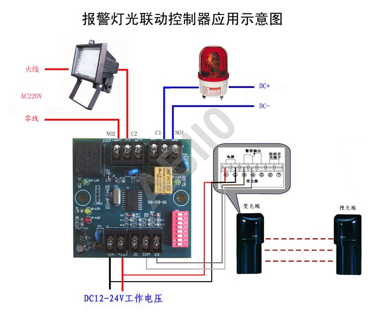 一款无需连接主机的报警联动控制器。对于周界报警器采用分线制报警主机控制,不便于现场报警;如果客户想实现现场报警 警号输出,通常我们的做法必须从控制主机处拉线过去或者在围墙上接一个大功率继电器来实现;对于前者要费工费料,后者则在报警后又没有亮灯延时的功能。针对以上情况,我公司开发生产了“多功能报警联动控制器”,该产品可以有效的实施现场报警,周边防区入侵实时 、警笛联动,能够做到及时阻慑入侵者,也能更好提高现场光源,这样有效的解决了夜间光源低周界没有灯联动的难题!只需一个常闭或常开开关量输入:如红外探头,对射,紧急按钮等常闭/常开信号,即可联动另一端的强电开关(常开开关),并配有输出开关延时,使另一端保持一定的时间与输入开关量同步。