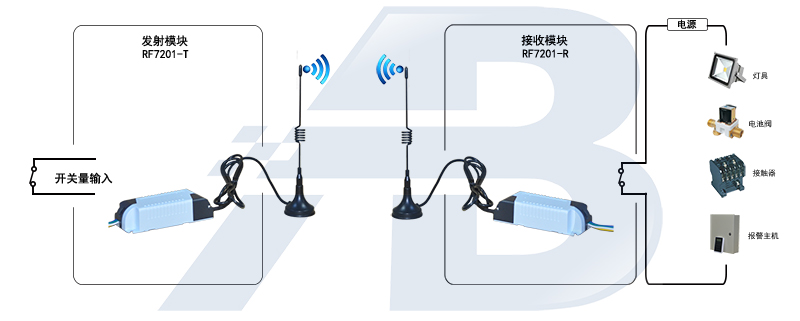 RF7201系列是我司推出的工业级远程无线单路开关控制模块,它提供了单路开关量信号輸入及单路开关量输出接口。1路开关量无线实时传送,接收模块的继电器输出与发射模块的开关输入实时关联,即发射模块输入开关闭合,接收模块相对应的输出继电器同步闭合,发射模块输入开关断开,接收模块的相对应输出继电器同步断开,各个通道互相独立。用户无需编程,无需现场布线就可以达到远程控制的目的。广泛应用于工业遥控器、工业现场监控、水厂自动化等项目。