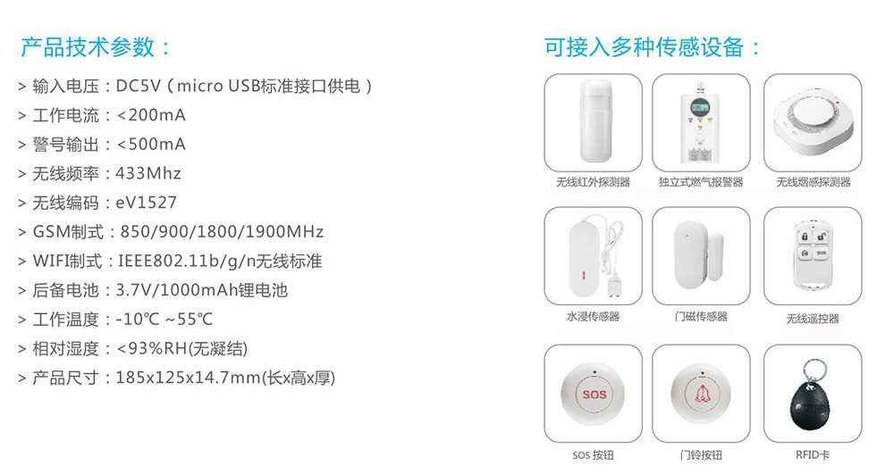 产品简介:2.4"彩屏 + WIFI+GSM双网报警 + 90个防区 + 报警联动 + APP控制
