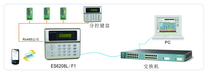 ※ 通讯总线上可接ES6501电话拨号器,实现电话报警,支持CID协议